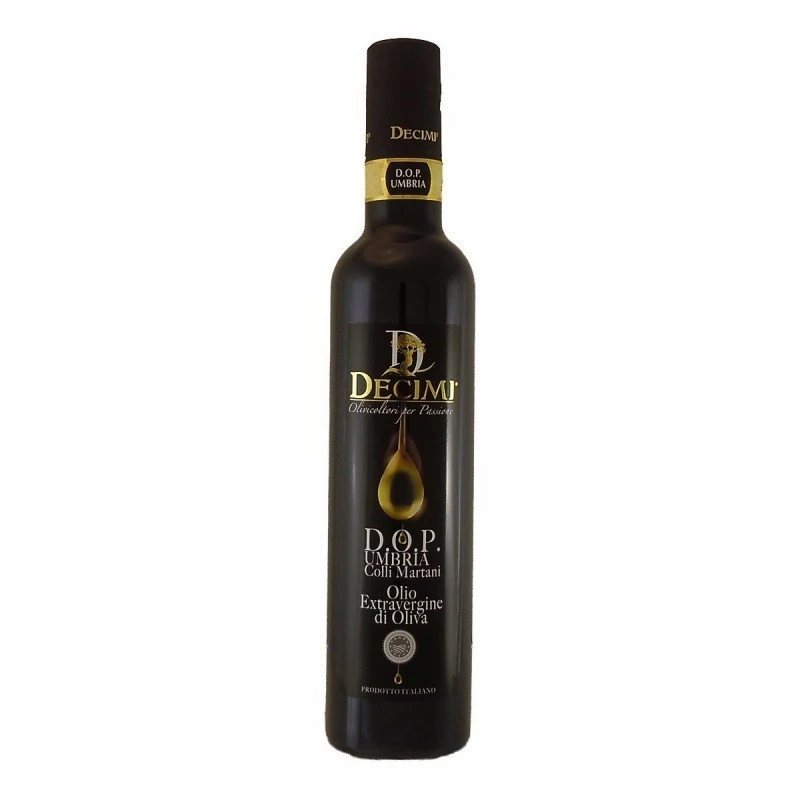 The Extra Virgin Olive Oil PDO Umbria Decimi is a 100% Italian oil of high selection, manufactured using olives exclusively of its own agricultural company of ‘Moraiolo, San Felice, Leccino, Frantoio’ variety and crushed in its own company press.