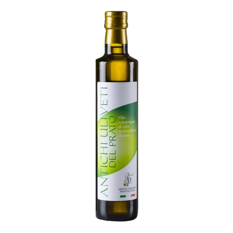 The Extra Virgin Olive Oil Antichi Uliveti del Prato produced by Fratelli Pinna is an extra virgin olive oil with an intense golden yellow color with green notes. On the nose it has elegant and complex fruity notes with references to exotic fruit, apple and Mediterranean flowers. To the taste it is perceived soft with bitter and spicy in good evidence but never disharmonic.