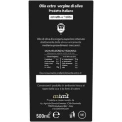 The Extra Virgin Olive Oil Nocellara Mimì is a single variety Nocellara extra virgin olive oil with a medium-intense green fruity taste, round and full with hints of tomato leaf and artichoke. It has a very light bitterness but a strong spicy.