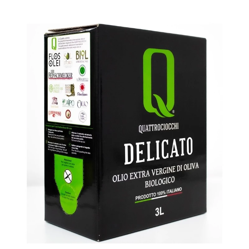 The Extra Virgin Olive Oil Delicato Leccino Organic Bag in Box Quattrociocch is an extra virgin of excellent choice, 100% Italian, manufactured from olives exclusively from its own farm company of the ‘Leccino’ variety.