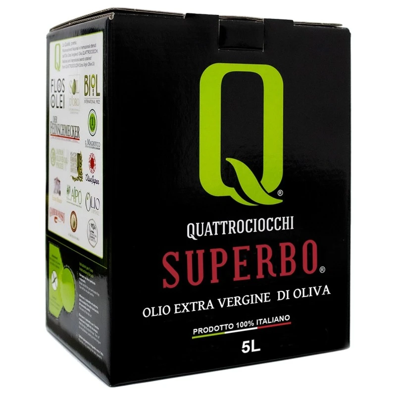 The Extra Virgin Olive Oil Superbo Moraiolo Bag in Box Quattrociocchi it’s an extra virgin of excellent choice, 100% Italian, manufactured from olives exclusively from its own farm company of the ‘Moraiolo’ variety.