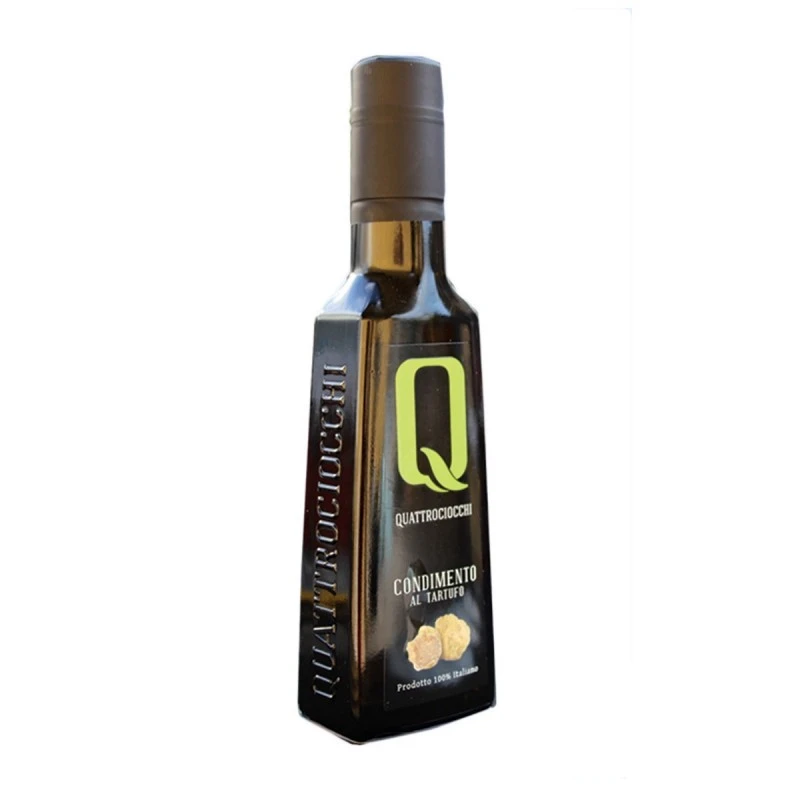 The Extra Virgin Olive Oil Truffle aromatized Quattrociocchi is a condiment made of Extra Virgin Olive Oil and Truffle obtained with the simultaneous pressing of the olives with truffle.