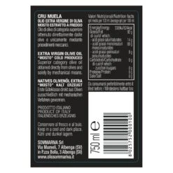 The Extra Virgin Olive Oil Cru Muela Sommariva it’s an extra virgin olive oil 100% Italian of high quality manufactured by a cold press in the meaning of Regulation U.E 1019/02, in limited quantity, from the best olives of the different qualities: Taggiasco, Leccino, Frantoio and Gentile.