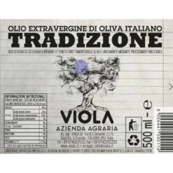 The Extra Virgin Olive Oil Tradizione by Viola is produced from the varieties of moraiolo, frantoio, leccino and other minor varieties of olives. Plants grown on stony and very permeable calcareous soils, placed at an ideal altitude for cultivation; parsimonious in the form and production of the fruit; cure and touch only by the hands of man.